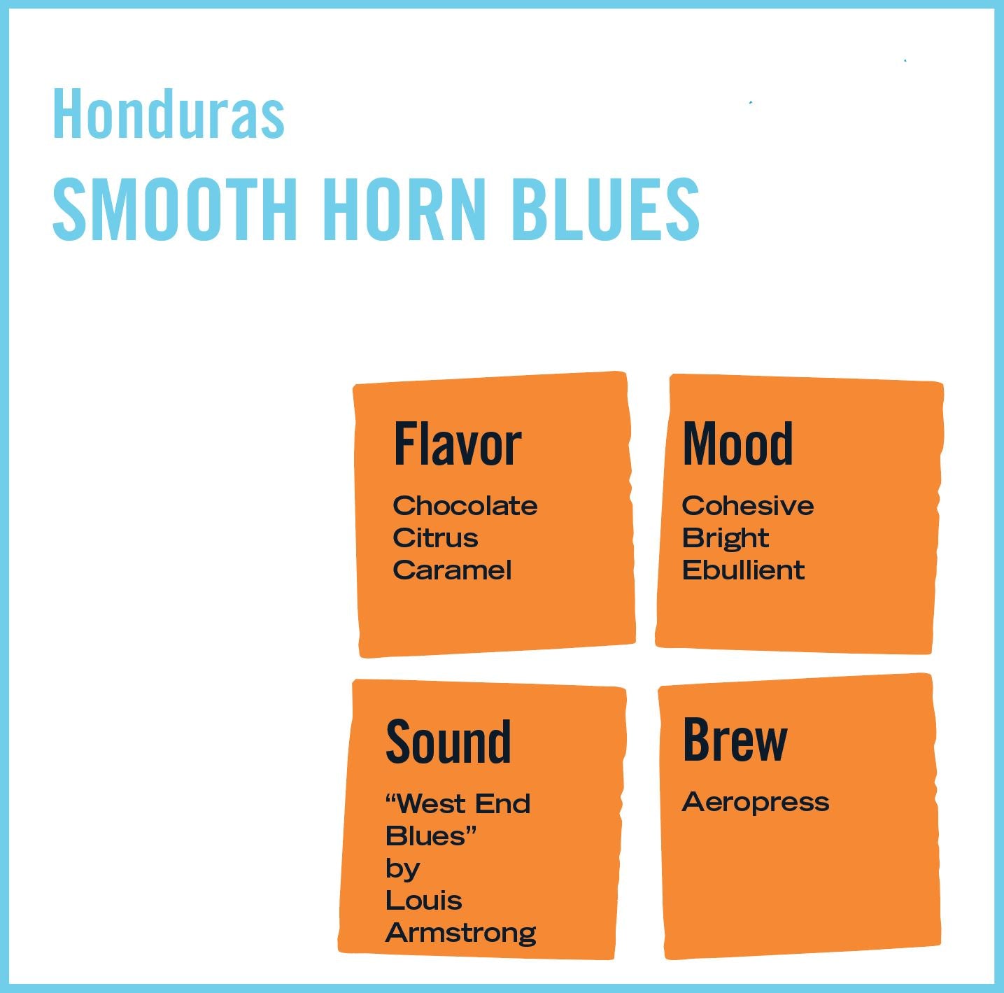The silky body and bright acidity of this varietal are reminiscent of the silky yet bright sound of brass horns playing the blues. Think "West End Blues" by Louis Armstrong. Similarly, this bean is sourced from a region with high altitudes and lower temperatures, producing a slow-maturing fruit and denser bean with mellow, vivid notes. This roast has both depth and range.